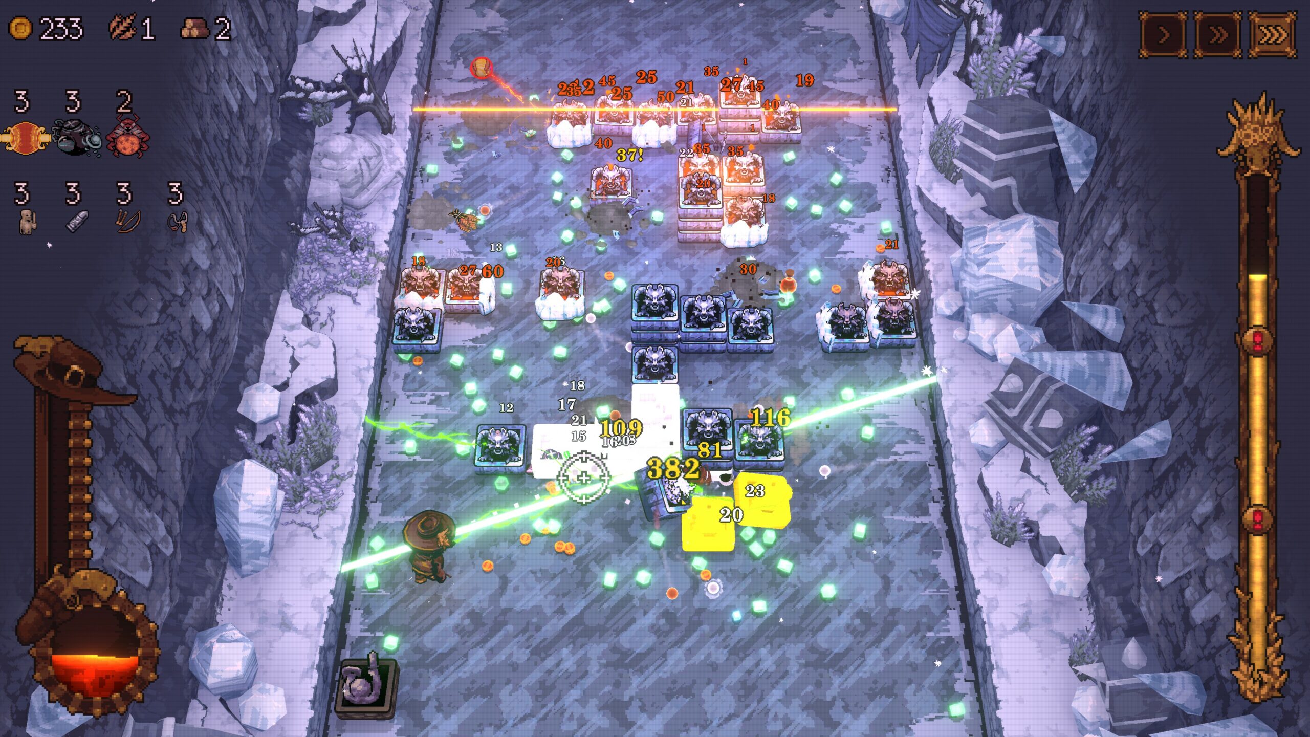 Kenny Sun & Friends on tehnyt huumaa syöttävän pallopaukuttelupelin, jossa ruudun yläreunasta vyöryy vihollisia – erimallisia palikoita, joiden sisällä on 3D-mallinnettuja vihollisia. Roguelite-hengessä jokainen kenttä on omanlaisensa, ja kierroksilla avautuu uusia aseita.