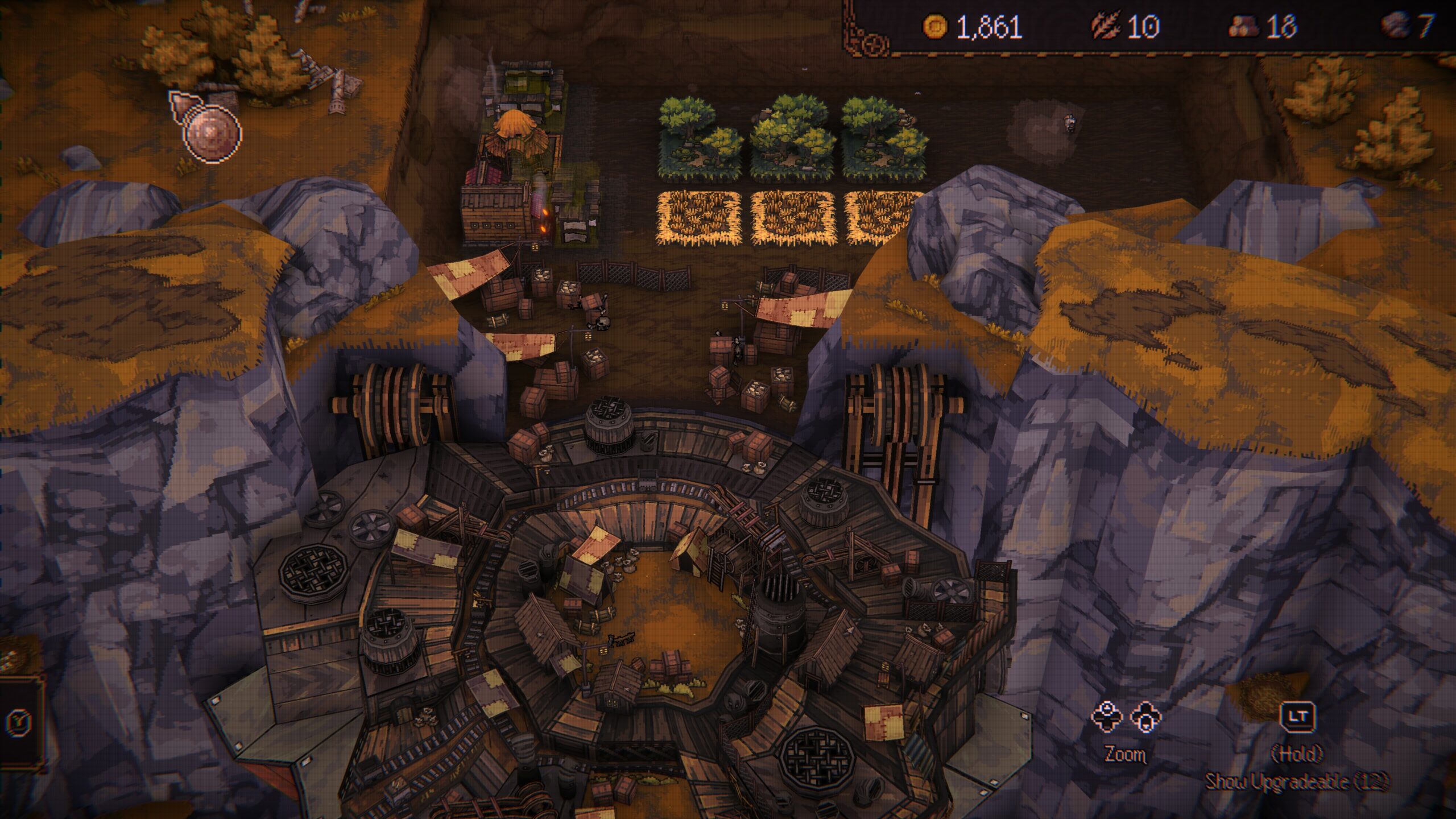 Pallo-ominaisuuksia voi kehittää ja yhdistellä, mikä luo kovaa synergiaa. Pelattava hahmo vaikuttaa merkittävästi siihen, millainen yhdistelmä on tehokas. Lisäksi tukikohdan rakentaminen on olennainen osa peliä: metsästä saadaan puuta, louhoksilta kiveä, ja näitä sekä kultaa käytetään rakennuksiin. Hahmojen kehitys ei nollaannu kuolemasta, joten jokainen yritys tuntuu palkitsevalta ja dopamiinitiputtelu pysyy herkullisena.