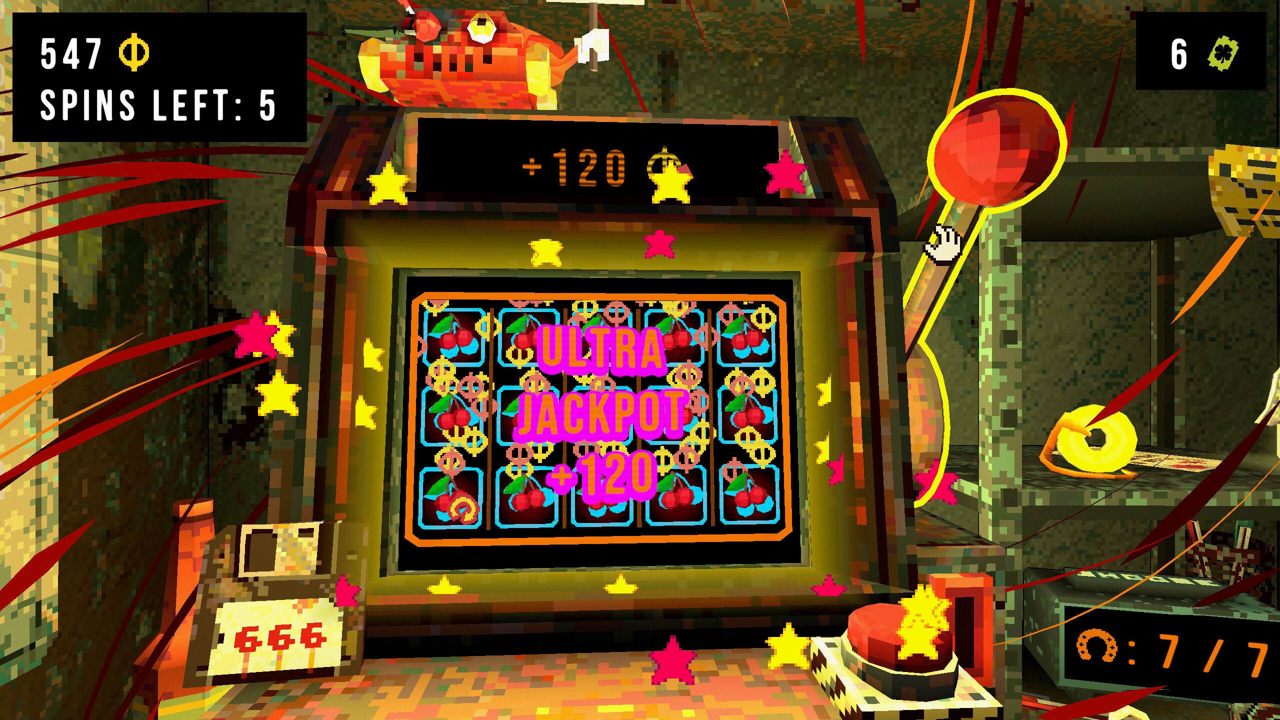 Audiopuoli tuuttaa rouhevaa otetta ja tässä on samanlaista pelituntumaa kuin Balatrossa. Kaikki tärisee ja rutisee kun kahvasta vääntää tuoden mielihyvähormonia pikapostina aivoihin.