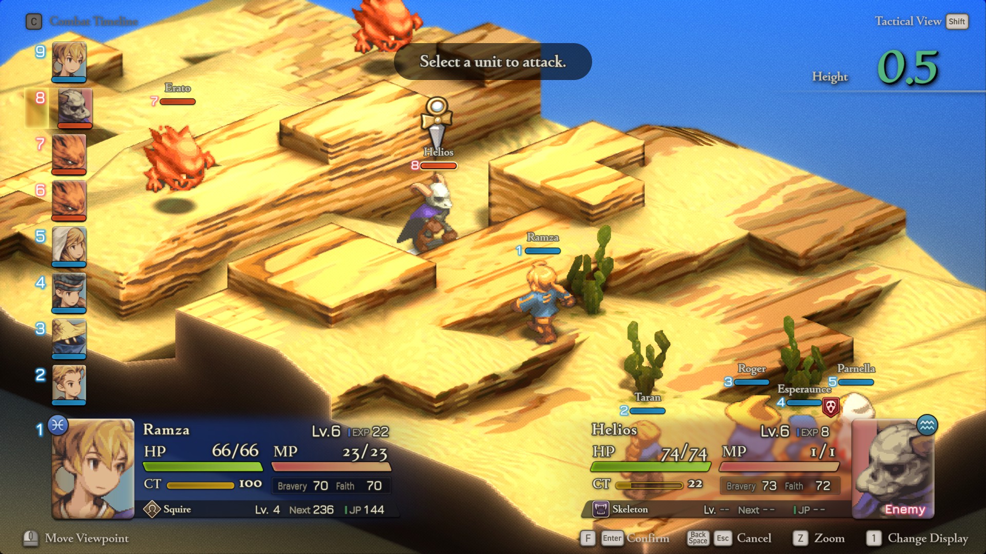 Final Fantasy Tactics – The Ivalice Chronicles pysyy juurillaan: ruudukolliset taistelut, korkeus, linjat ja vuorojärjestys määräävät voimasuhteet. Jokainen kenttä on kuin kolmiulotteinen shakkilauta ruutuineen, ja jokainen taistelu kuin shakkipulma ratkottavaksi. Taisteluiden välillä parannellaan sotilaiden kykyjä, palkataan uusia sotilaita, koulutetaan uusia ammatteja, sekä kuljetellaan tarinaa eteenpäin. Graafisesti peli ei ole enää näyttävimmästä päästä, mutta The Ivalice Chroniclesin tuomat silotellut pikselit ja selkeämpi moderni käyttöliittymä helpottaa pelaamista kummasti. Enhanced-versiossa peli myös tallentaa pelin automaattisesti, sekä taisteluja, että välivideoita voi nopeuttaa – kaikki erittäin tervetulleita lisäyksiä.