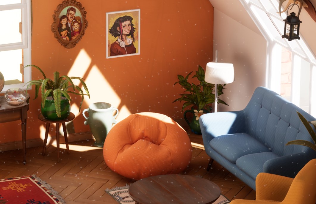 Hozy pyörii Unreal 5 -pelimoottorilla ja se näkyy. Täysillä grafiikoilla säteenseurannat päällä, peli on jumalattoman nätti. Kosteat ja kiiltävät pinnat peilaavat kaiken, valaistus on todella realistinen ja seinien lähelle viedyt kalusteet värjäävät pinnat omilla väreillään, kuten oikeastikin.