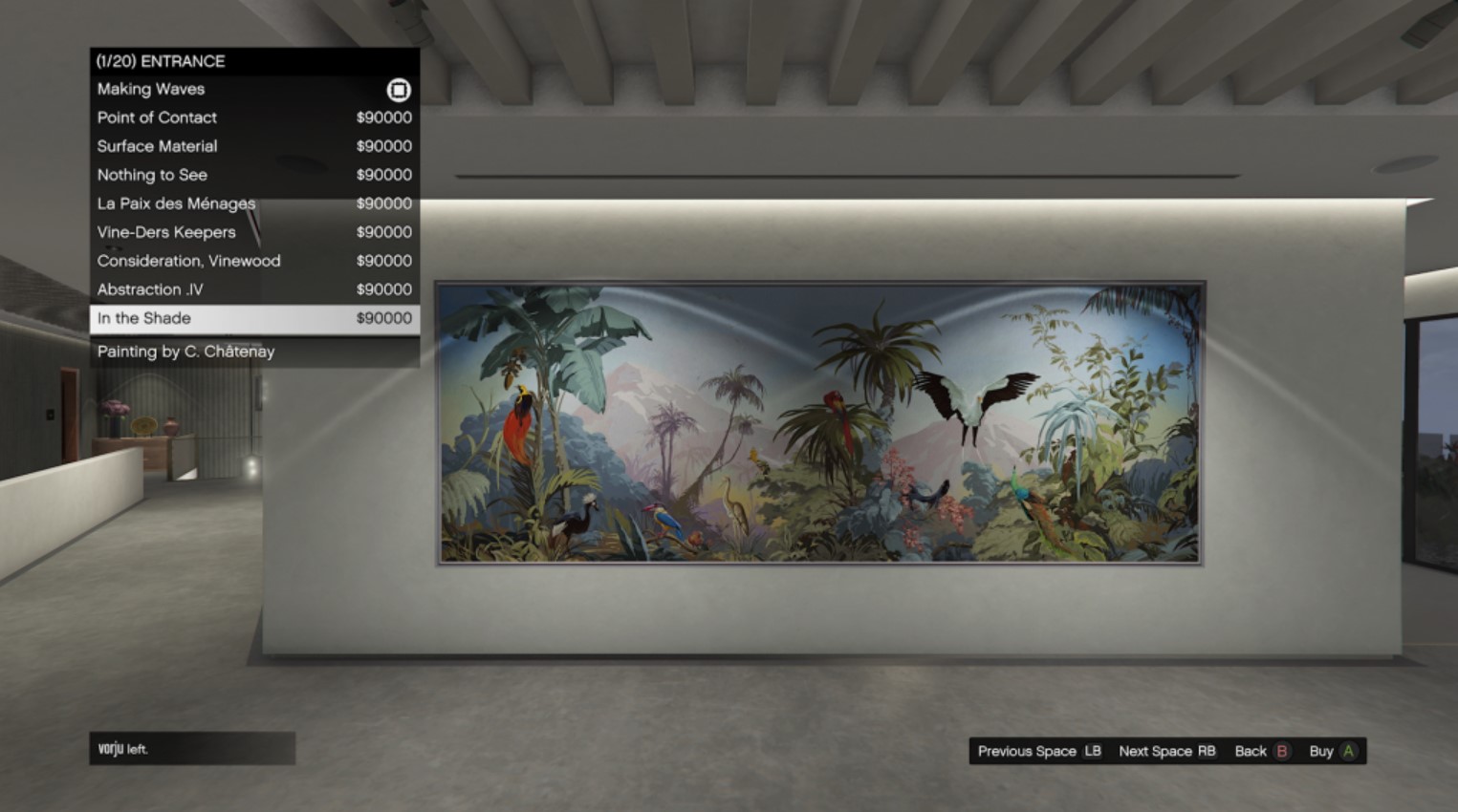 Päivityksestä on löydetty myös mahdollinen viittaus Red Dead Redemption 2 -peliin. Rockstar Intelin mukaan erääseen GTA Online -kartanoon ostettavan taideteoksen tekstitiedoissa mainitaan taiteilija Charles Châtenay. Hahmo tunnetaan Red Dead Redemption 2:sta sivutehtävästä The Artist’s Way, jossa pelaaja kohtaa köyhän taiteilijan useaan otteeseen Saint Denisin kaupungissa. Tehtävä päättyy siihen, että Châtenay pakenee veneellä Tyynellemerelle.