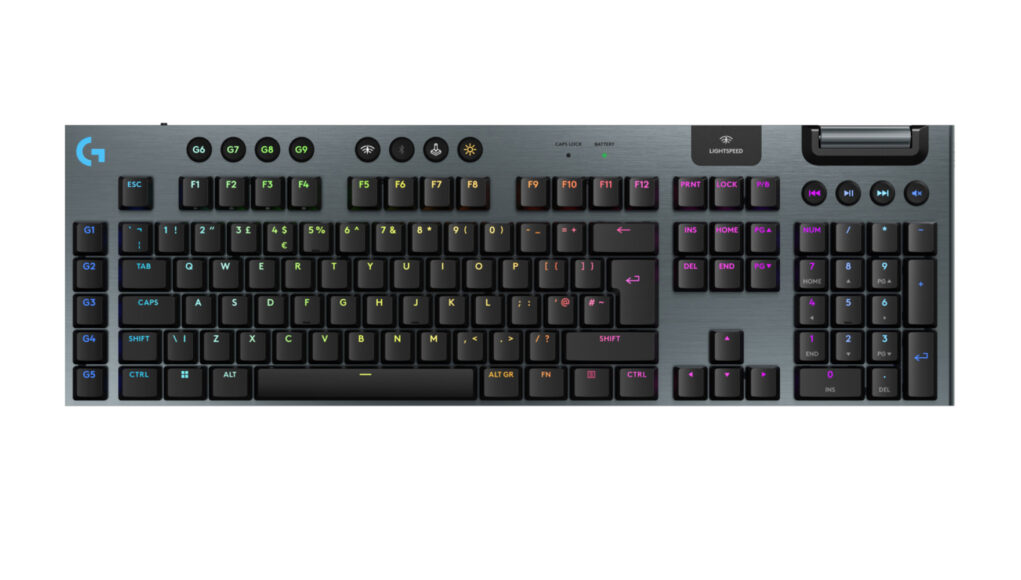 Logitech G915 X Lightspeed on tuoteperheen uusin, matalaprofiilinen pelinäppäimistö, josta löytyvät kaikki tarvittavat napit. Myös ne kirjanpidossa käteväksi käyneet numeronäppäimet.