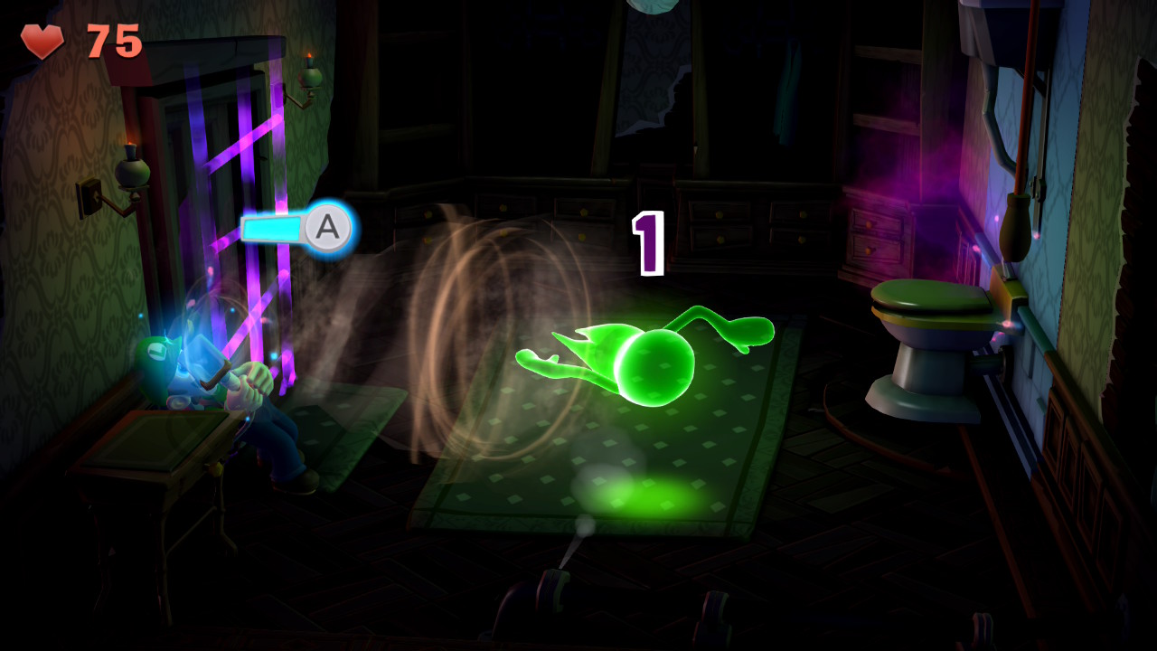 Vähän pimeä, vähän kutkuttava ja taulu, joka hieman tärisee. Kahden ohjaimen imurointitaktiikka vaatii totuttelua, ja joskus aarteiden sijaan imuriin tarttuukin villisti pakoon pyrkivä vihertävä kummitus! Hui kauhistus! Tätä on Luigi’s Mansion 2 HD, jossa Marion säikky veli pistetään imurin kanssa keräämään ilkikuriset kummitukset ja Pimeän kuun kappaleet talteen.