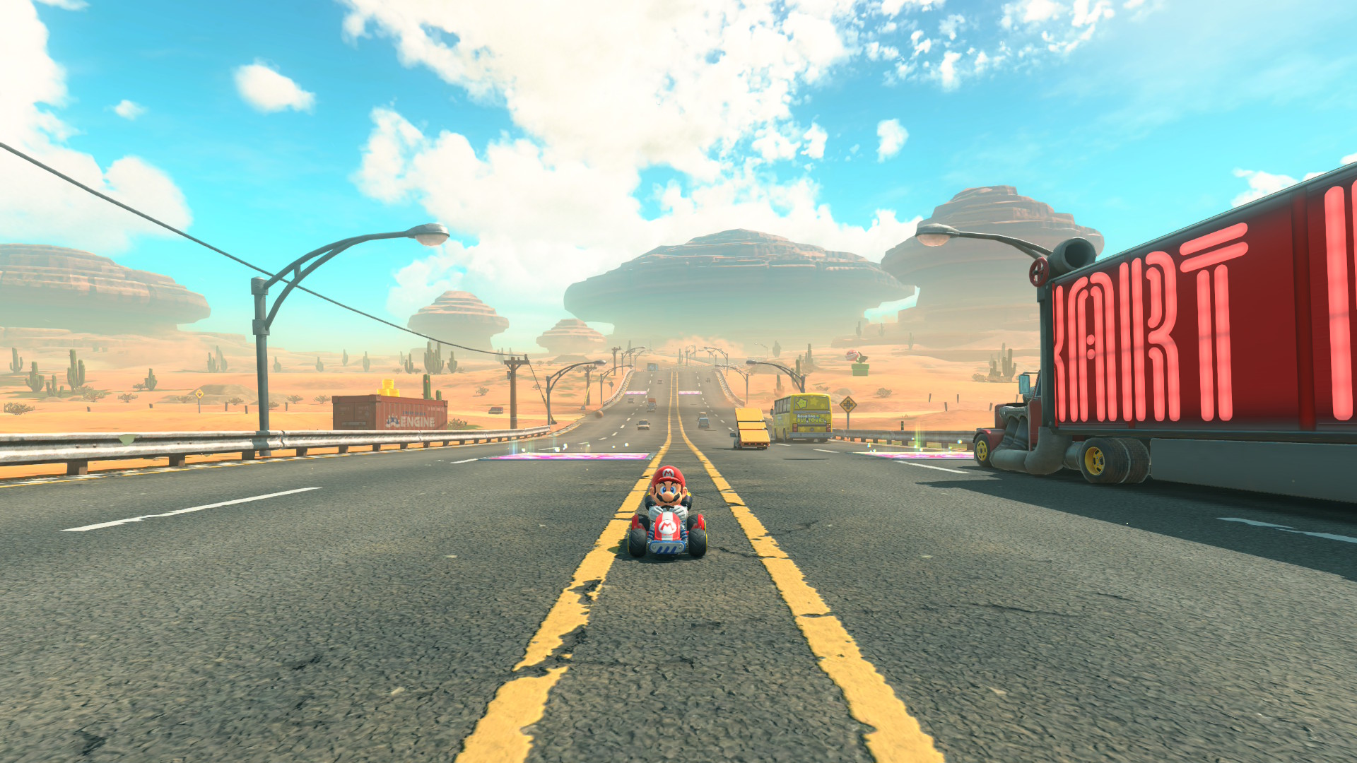 Kilpi, ohitus, banaani – ***kele!, takaisin kisaan, kapuat ohi kilpailijoiden, olet ykkösenä, maali häämöttää – sininen kilpi! BOOM, numero 12 menee ohi. Kiitos, hyvää yötä ja kaveruussuhteet tauolle. Tätä on Mario Kart, sekä perheen uusin jäsen Mario Kart World, joka lupailee avointa maailmaa ja uutta kisatunnelmaa.