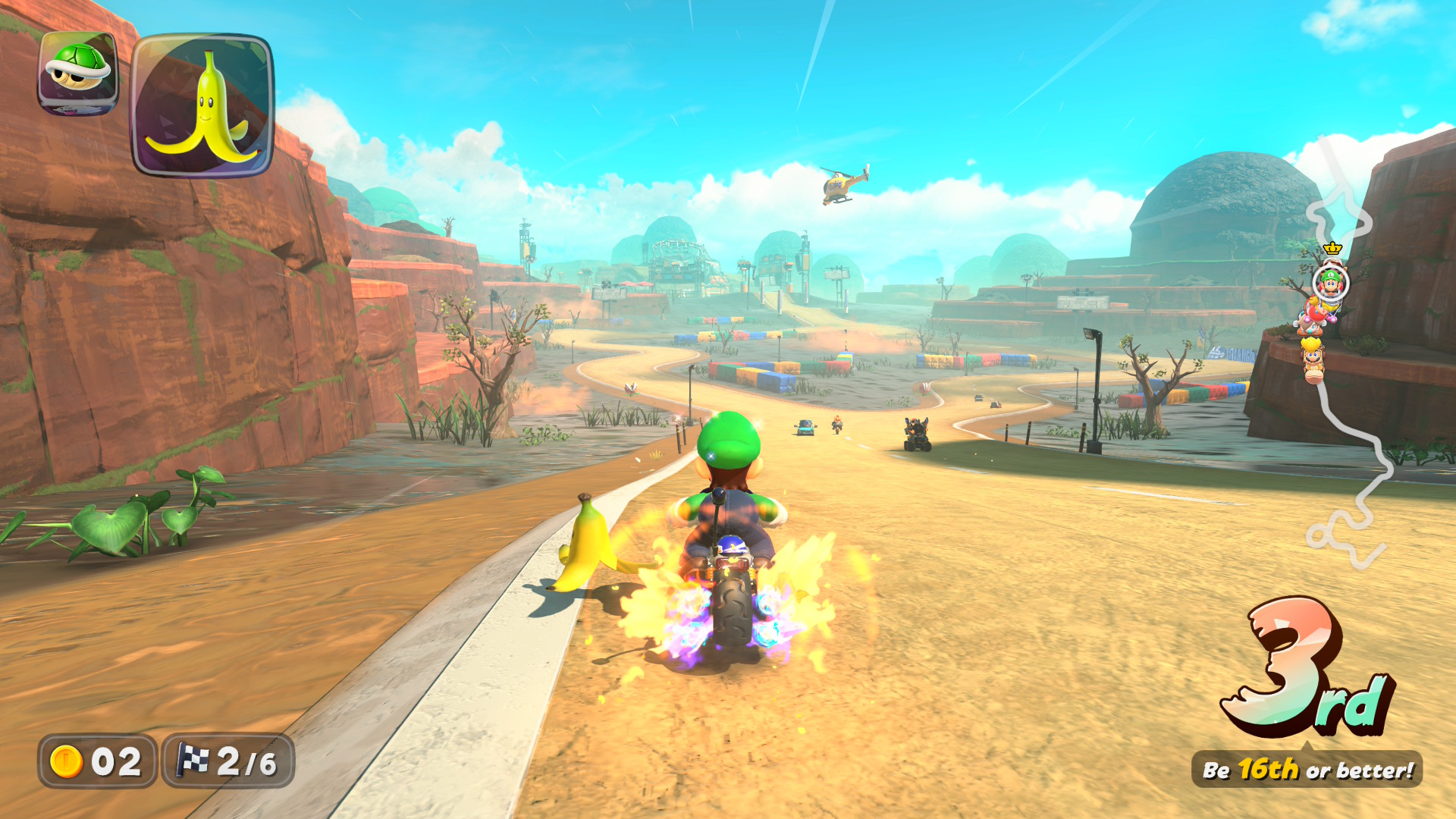 Mario Kart Worldin pahin kilpailija on yhä voimissaan oleva Mario Kart 8 Deluxe. Siinä on kenttiä, siinä on kulkuvälineitä ja hahmoja vaikka kuinka paljon, joten mitä tarjottavaa World tarjoaa? Avoimen maailman? Kyllä, sen. Maailman, joka on avoin, mutta sisältää kovin vähän sisältöä.