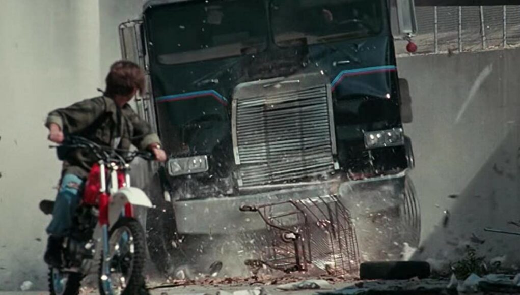 T-1000 lähtee perään Freightliner-hinausautolla ja tekee sen tyylillä: se syöksyy Plummer Streetin ylikulkusillalta Hayvenhurst Avenuen kohdalla, Northridgen itälaidalla, suoraan alas Bull Creekiin ja repii auki noin 12 metriä leveän betoniuoman.