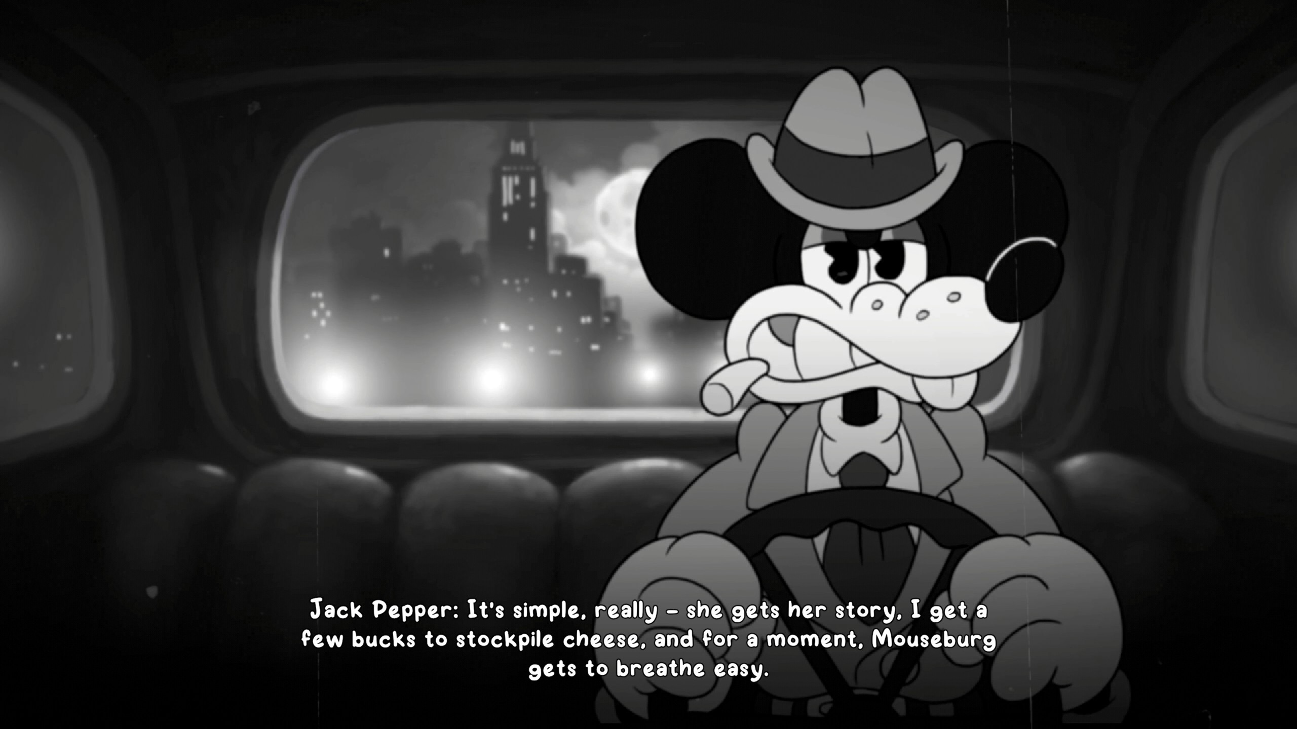 Joka puolelta säntää gangsterihiiriä, poliisihiiriä – korruptoituneita tietenkin, sekä kaikki haluavat ampua ja hakata yksityisetsivä Jack Pepperin (Troy Baker). Taikuri on kadonnut ja mysteeri olisi selvitettävän, jos pysyy hengissä siihen asti.