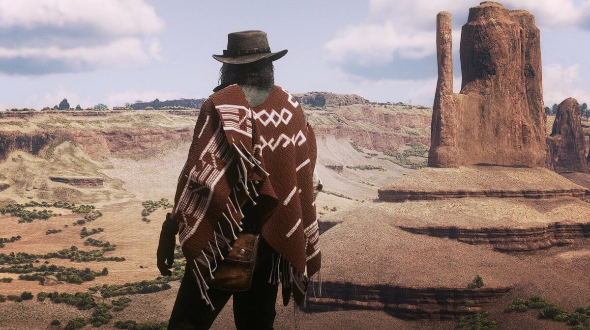 Man With No Name Poncho lisää peliin vaatteen, joka muistuttaa klassisissa lännenelokuvissa nähtyä ponchoa.